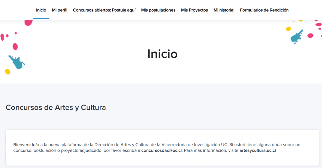 La Dirección de Artes y Cultura tiene su propia plataforma de postulaciones, que permite mantener un seguimiento flexible de todas las etapas de los proyectos adjudicados. Toda postulación es realizada a través de esta plataforma: